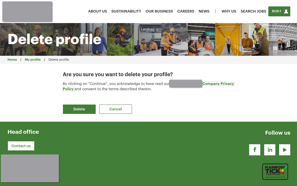 When deleting your account on this careers website, you are given one last chance to look at their privacy policy.