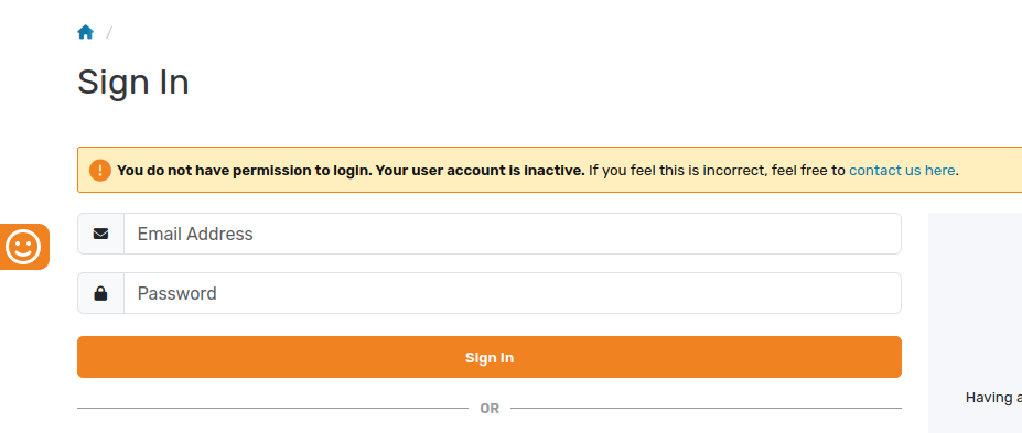 Let’s see what happens if we were to replace that user ID with the user ID of a different account (that we control, of course). Let’s also ensure that the “User Active” checkbox isn’t ticked. After submitting the form, the page reloads and the “User Active” checkbox is ticked again. Upon reloading the tab with the target user account we can see that we are redirected to the sign in page. Any attempt to sign in results in the following error.