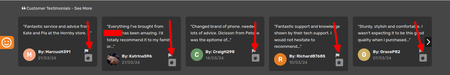 This userscript adds a bomb button to each review that wasn’t written by a “guest”. When clicked, this button will deactivate the reviewer’s account. This works for testimonials as well.